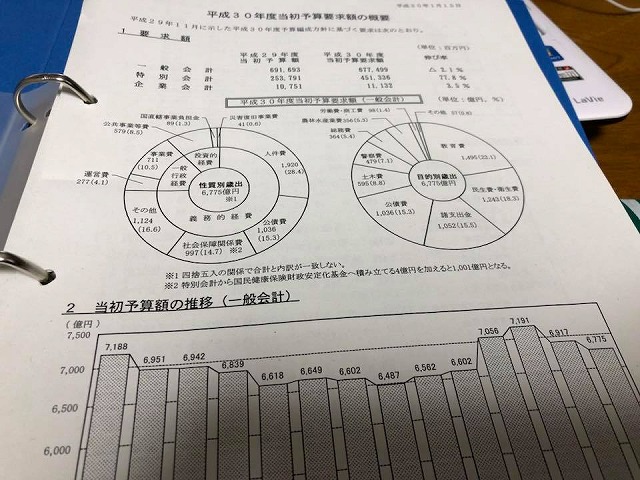 今日は、岡山県の「平成30年度当初予算要求額」、一般会677,499百万円、特別会計451,336百万円、企業会計11,132百万円の内容について勉強させて頂きました。「聞くは一時の恥、聞かぬは一生の恥」、ありがとうございました。
