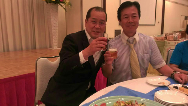 就任祝賀会は終わっておりましたが、何とか祝意を表したいと会場に入りました。渡辺議長が後援会の皆様とご慰労会をされておられましたので、お詫びとご挨拶をさせていただきました。