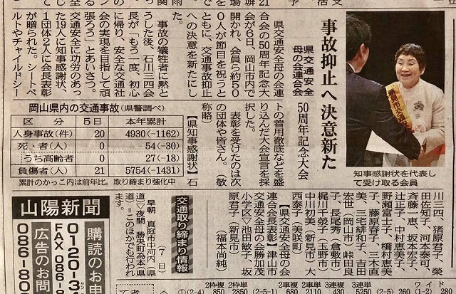 おめでとうございます。写真は、新見市の中川初美さんです。山陽新聞全県版。