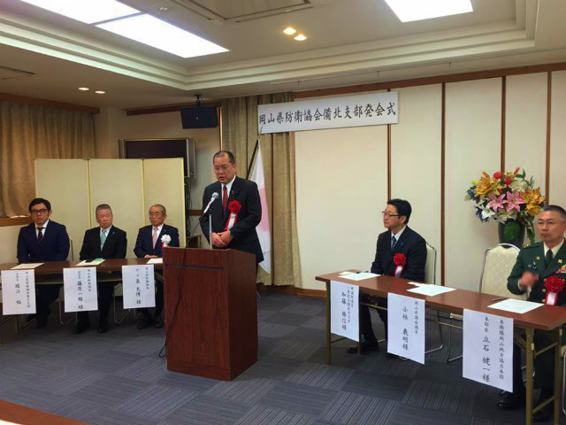 今日は11時から新見市内のホテルで開催された『岡山県防衛協会備北支部発会式』に出席しました。一言ご挨拶の機会を頂きました。ありがとうございました。