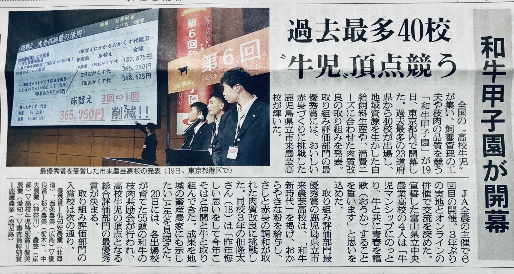もっと知って欲しい「和牛甲子園」のニュース。「日本農業新聞」です。岡山県の代表校は県立瀬戸南高等学校です。