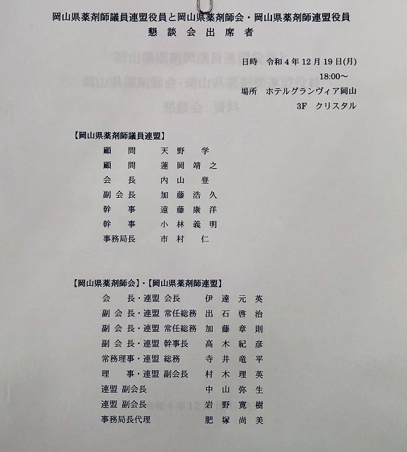 午前中新見市内で、あれやこれや。午後から県議会棟。18時から、岡山市内のホテルで開催された「懇親会」に出席しました。