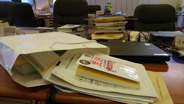 午前中に岡山県議会棟へ入りました。荷物がいっぱいです。