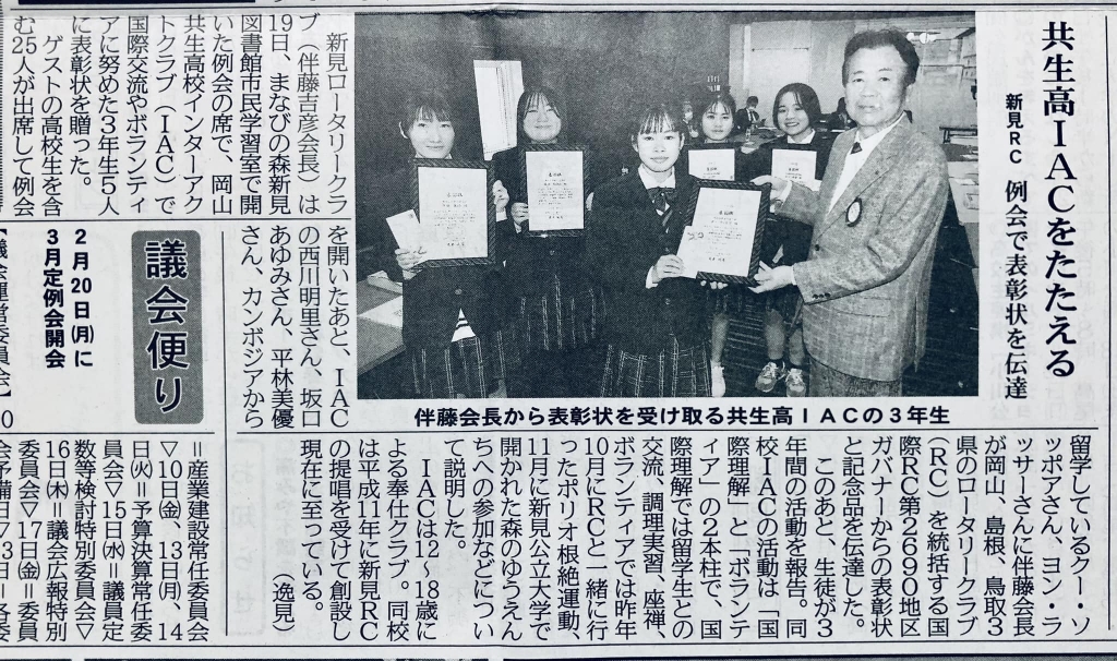 若者の活躍を地域紙「備北民報」が伝えている。もちろん、支援組織、支援教員のご尽力があってこそだ。
