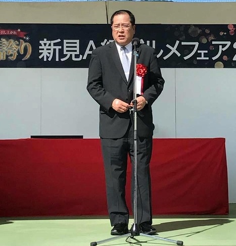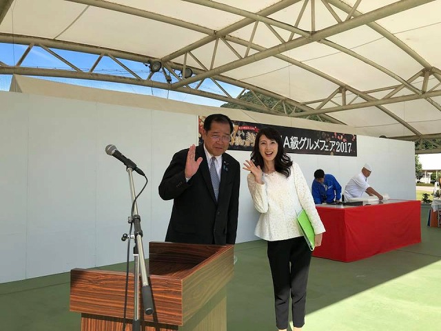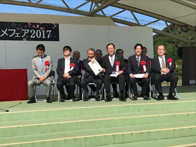 10時から「憩いとふれあいの公園」で開催された『新見A級グルメフェア2017』に出席しました。晴天でよかった。