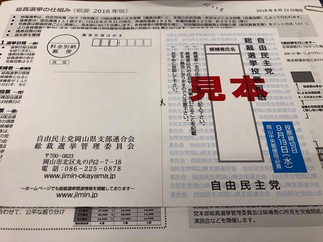 9時からの「委員長レク」の後、9時40分から「自由民主党岡山県議団総会」に出席しました。はじめに、9月20日㈭投開票の自由民主党総裁選挙について報告がありました。党員投票は19日㈬までで、岡山県内の党員数は22,316人です。次に平成30年9月定例県議会自由民主党代表質問について報告がありました。その他として、県議会地域公共政策セミナー等について。