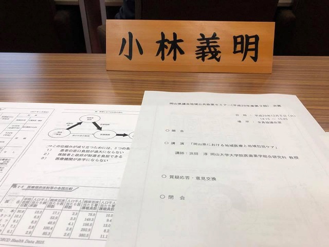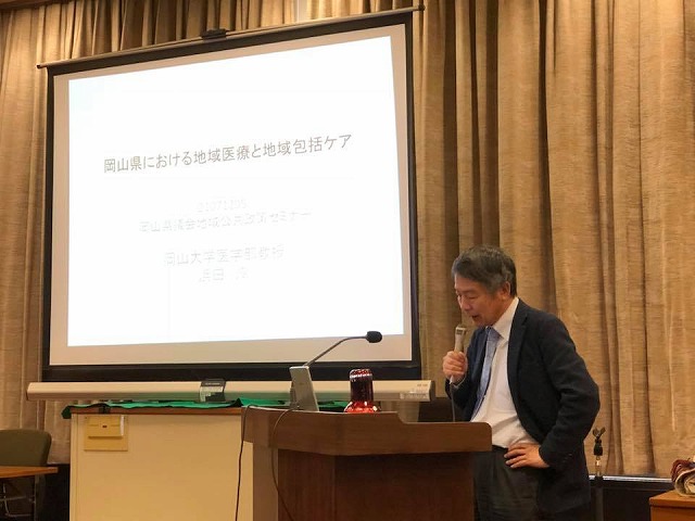 『11月定例岡山県議会』散会後、ただちに「県議会全員協議会室」で『平成29年度第3回岡山県議会地域公共セミナー』が開催されました。講師は、岡山大学大学院医歯薬学総合研究科の浜田淳教授です。演題は、「岡山県における地域医療と地域包括ケア」。分かりやすくご講演して下さいました。大学院在籍中、大変お世話になった浜田教授であります。