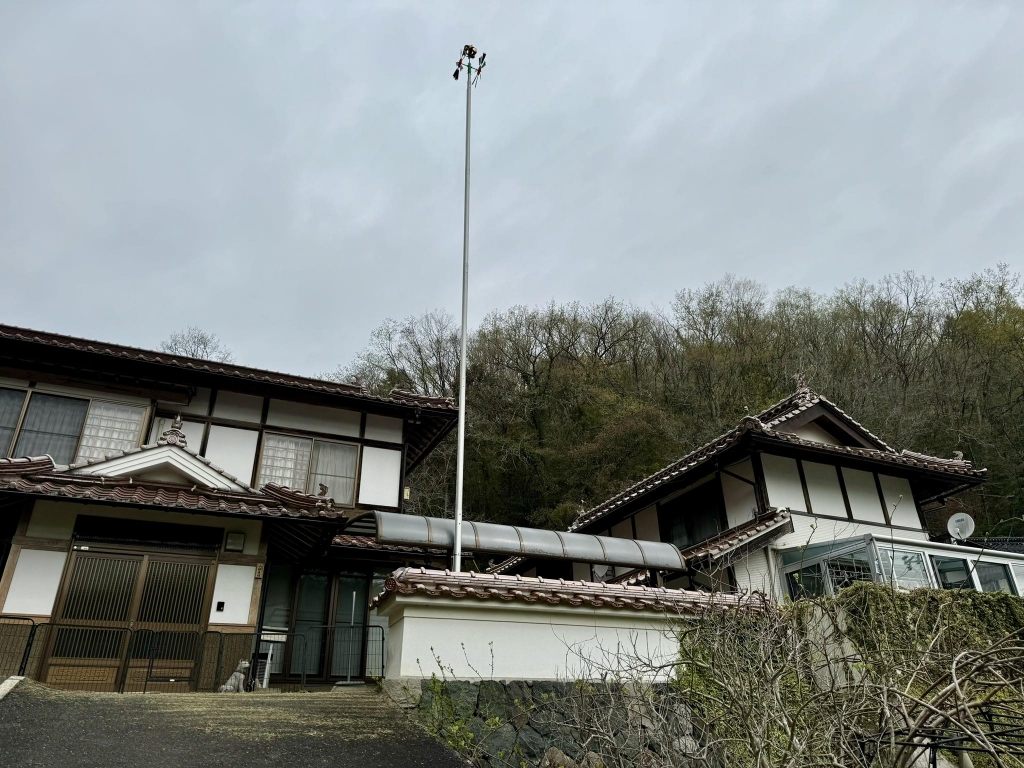何十年振りだろう。我が家に鯉のぼりのポール、立つ(*^^)v