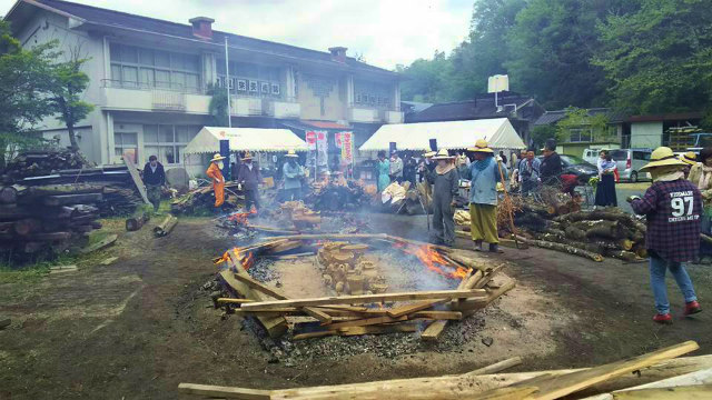 10時30分ごろに新見へ帰って、「猪風来美術館周辺」で開催されている『第22回春の縄文野焼き祭り』に出席しました。遅れての出席でしたが、ご挨拶の時間をとっていただきました。ありがとうございました。