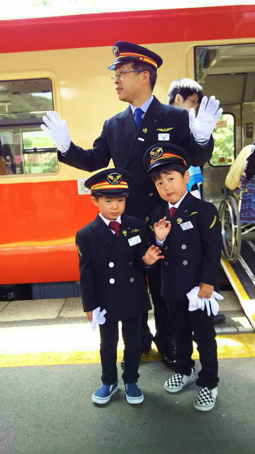 岡山駅長さんも当時の制服でお出迎えをされていました。
