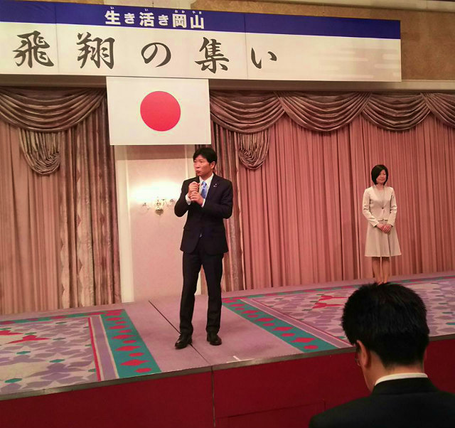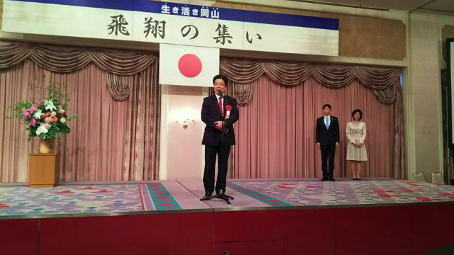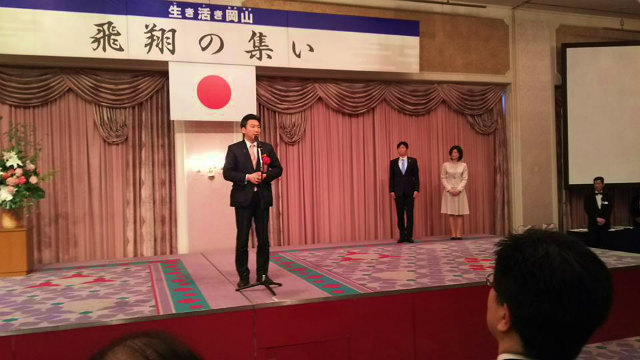 再び岡山へ戻って、14時から市内のホテル開催された伊原木隆太知事の『飛翔の集い』に出席しました。多くの皆様がご出席でした。