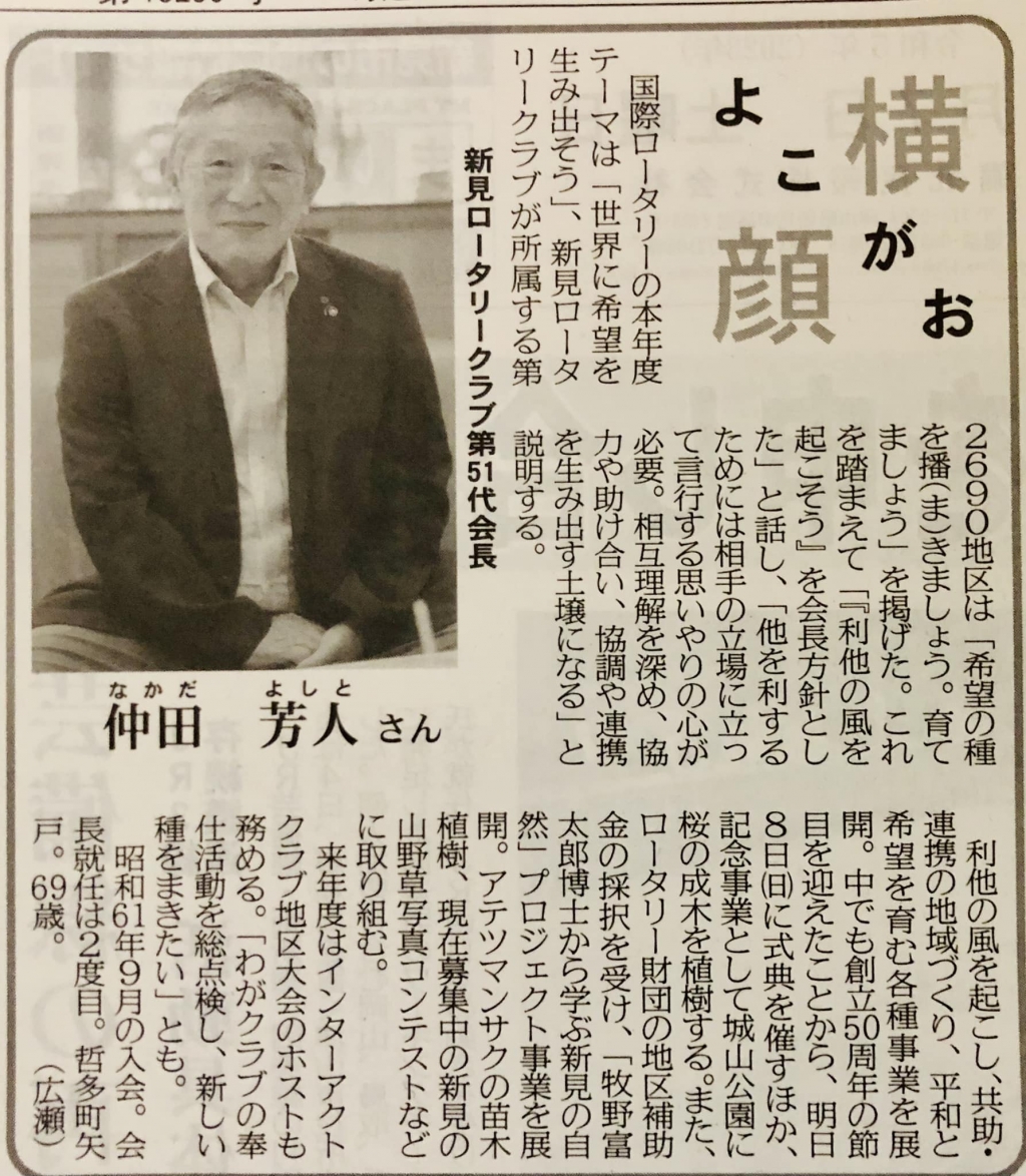 正面むいても「横顔」は、地域紙「備北民報」です。創立50周年、おめでとうございます。