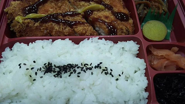昼食は議会棟で、ささっと、ささっと。「とんかつ弁当」でした。