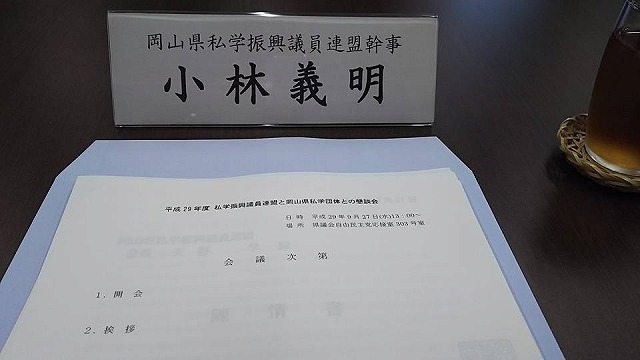 続いて、「平成29年度私学振興議員連盟と岡山県私学団体との懇談会」に出席しました。ありがとうございました。