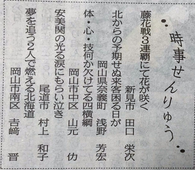 同級生田口栄次くん、119回目の掲載は、山陽新聞「時事せんりゅう」です。素晴らしい!