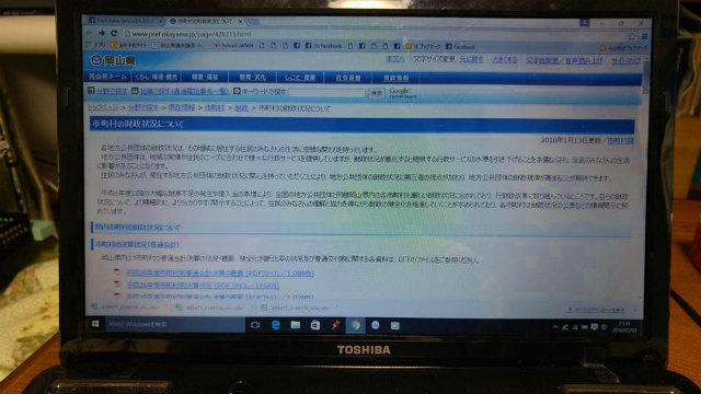 もう一つデータの話。岡山県のホームページで、「県内市町村の財政状況について」公開されている。
