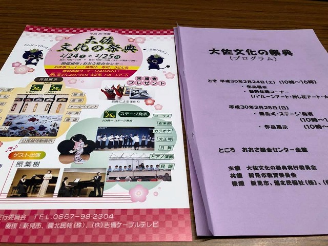 10時から、「おおさ総合センター」で開催された『大佐文化の祭典』の開会式に出席しました。一言お祝いのご挨拶を申し上げました。地域創生は、産業・教育・医療福祉、そして文化です。ありがとうございました。