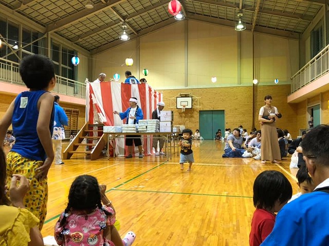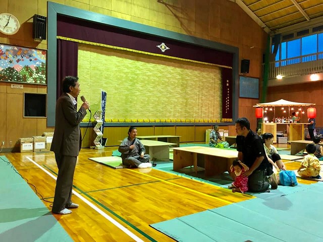 続いて、「旧草間中学校体育館」で開催された『草間ふれあい納涼祭り』に出席しました。ありがとうございました。ご盛会おめでとうございます。