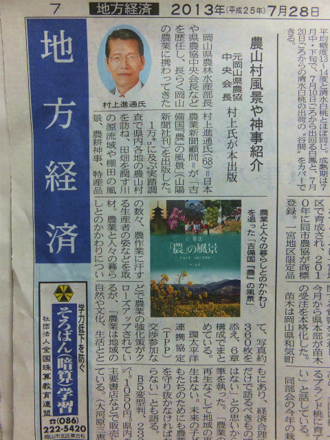 今朝の山陽新聞にこの方が。お世話になりました。