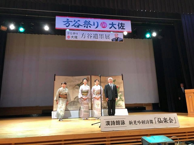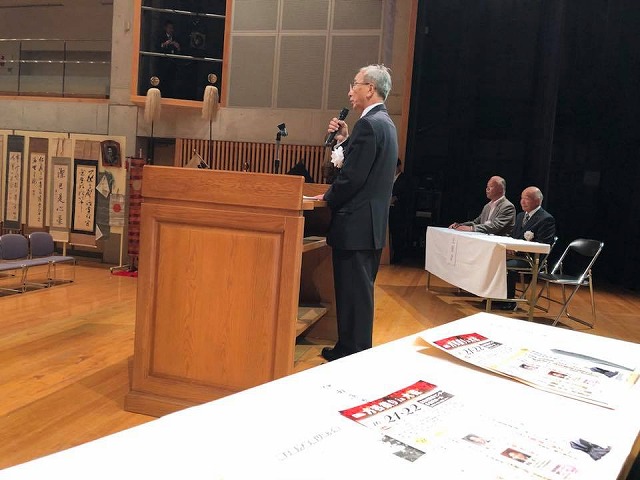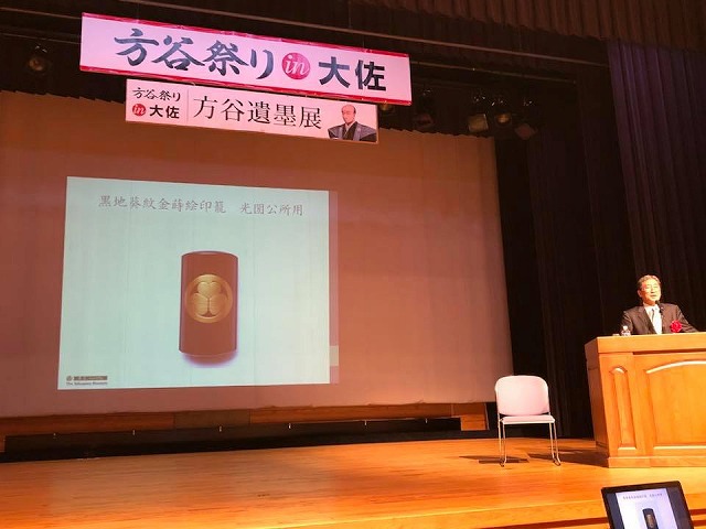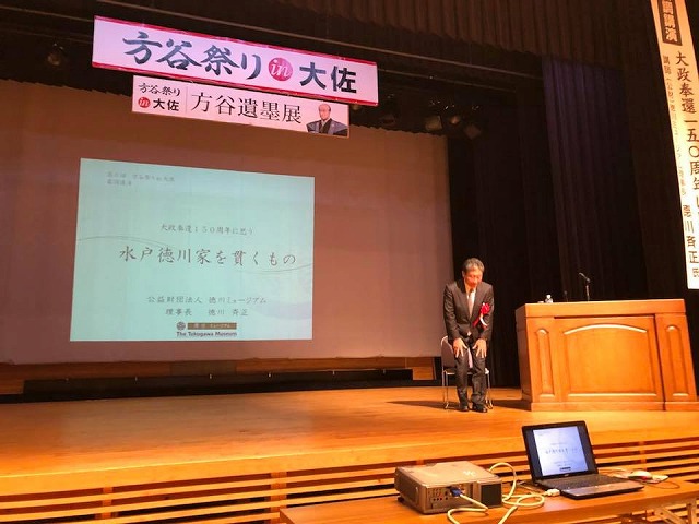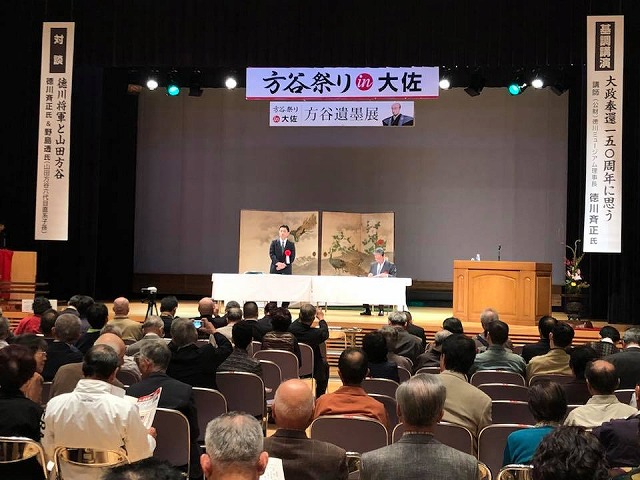 急いで「おおさ総合センター」へ移動して、10時から開催された『第6回方谷祭りin大佐』に出席しました。一言ご挨拶の機会を頂きました。ありがとうございました。水戸徳川家第15代当主徳川斉正様、山田方谷直系子孫野島透様を前にしてのスピーチ、汗が出ました。