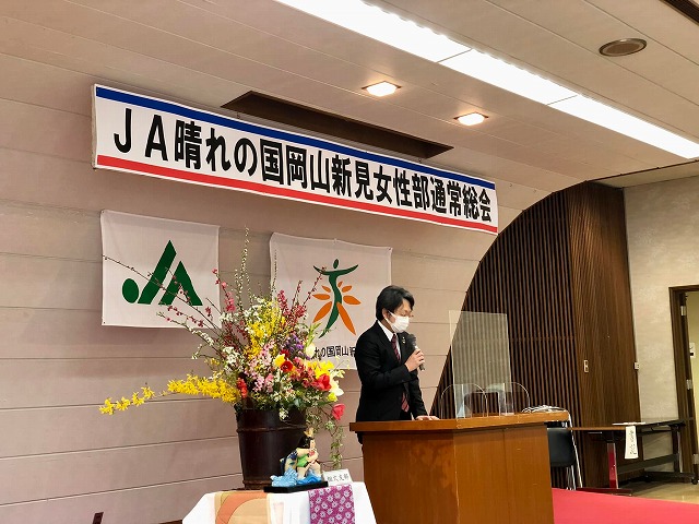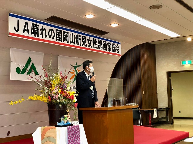 9時30分から、「令和4年度JA晴れの国岡山新見女性部通常総会」に出席しました。開会行事で、一言ご挨拶の機会を頂戴しました。