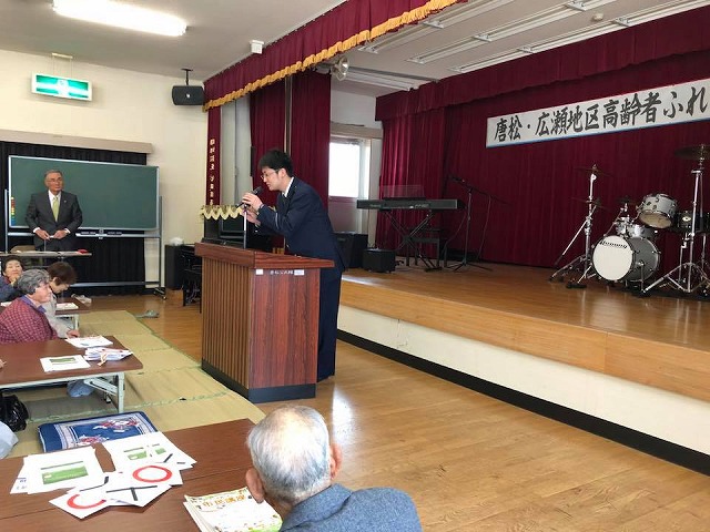 10時から「唐松市民センター」で開催された『唐松・広瀬地区高齢者のつどい(主催:唐松地域福祉ネットワーク推進会)』に出席しました。一言ご挨拶の機会を頂きました。ありがとうございました。