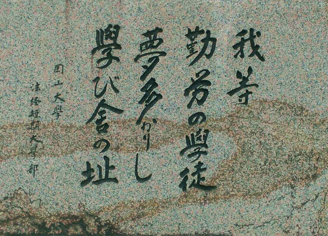岡山大学にあります。格調高い碑文です。