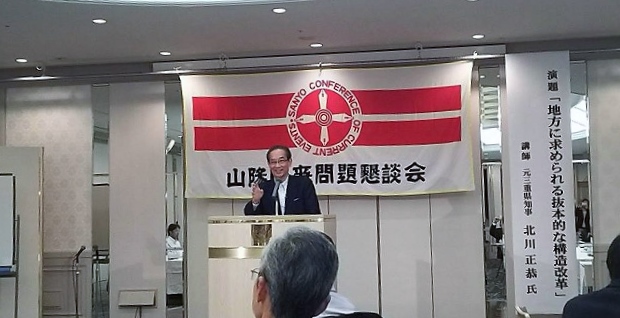 今宵の講師は、元三重県知事の北川正恭氏。演題は「地方に求められる抜本的な構造改革」でした。90分の講演があっという間でした。内容は山陽新聞でお読みください。
