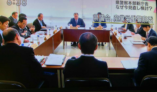 今朝は6時30分に自宅を出ましたが、岡山県議会棟に入れたのは9時前でした。凍結した道路は怖い怖い。9時から「委員長レク」、10時から「産業労働警察委員会」を開会しました。本日の協議事項は、「平成28年度当初予算要求内容について」が主なもので、その他報告事項でした。委員会開催中にTVカメラが多く入っておりました。岡山県警察本部新庁舎の設計見直しの件の取材でした。
