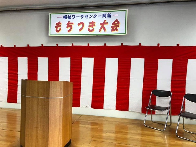 9時30分から、「正田ふれあいセンター」で開催された『福祉ワークセンター阿新もちつき大会』に出席しました。開会行事で、一言ご挨拶を申し上げました。