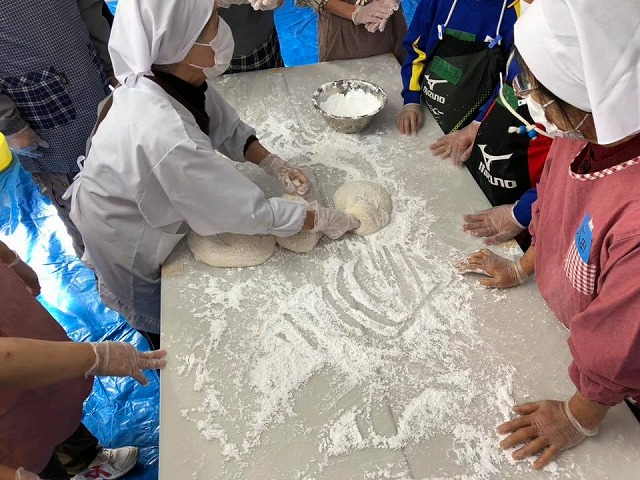 福祉ワークセンター阿新の関係者の皆様とそれを支える各種団体の皆様、総勢160名のもちつき大会です。「今年で14回、いや15回になるなぁ」と頑固じいさんの会の皆様がおしゃっておられました。素晴らしいことです。