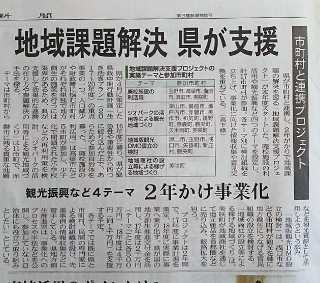 「6月定例県議会」の一般質問で取り上げさせて頂いた。廃校施設の利活用等々、大いに期待しているとエールを送った。そして、遅れて手を挙げる市町村についても格段の配慮を求めた。担当部長から前向きなご答弁を頂き嬉しく思った。