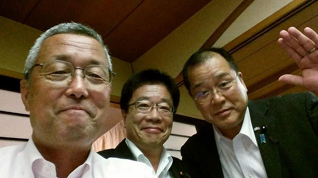 意見交換会終了後、上田県議の発案で、年齢が同じ3人で「ハイ!ポーズ」。