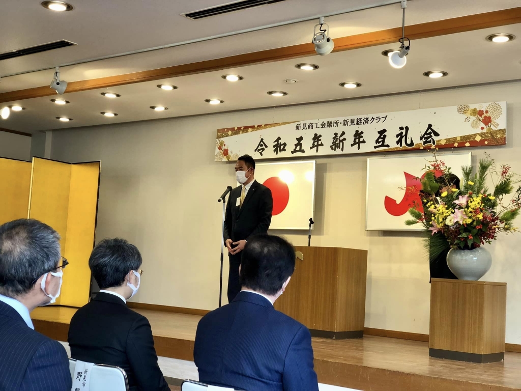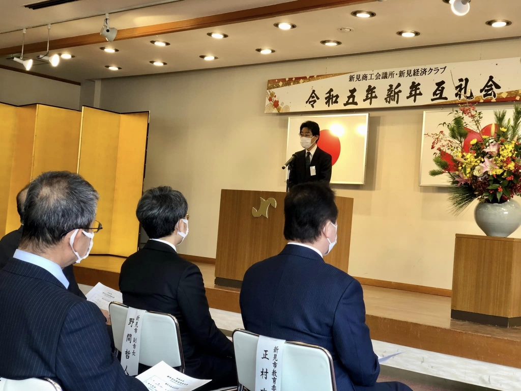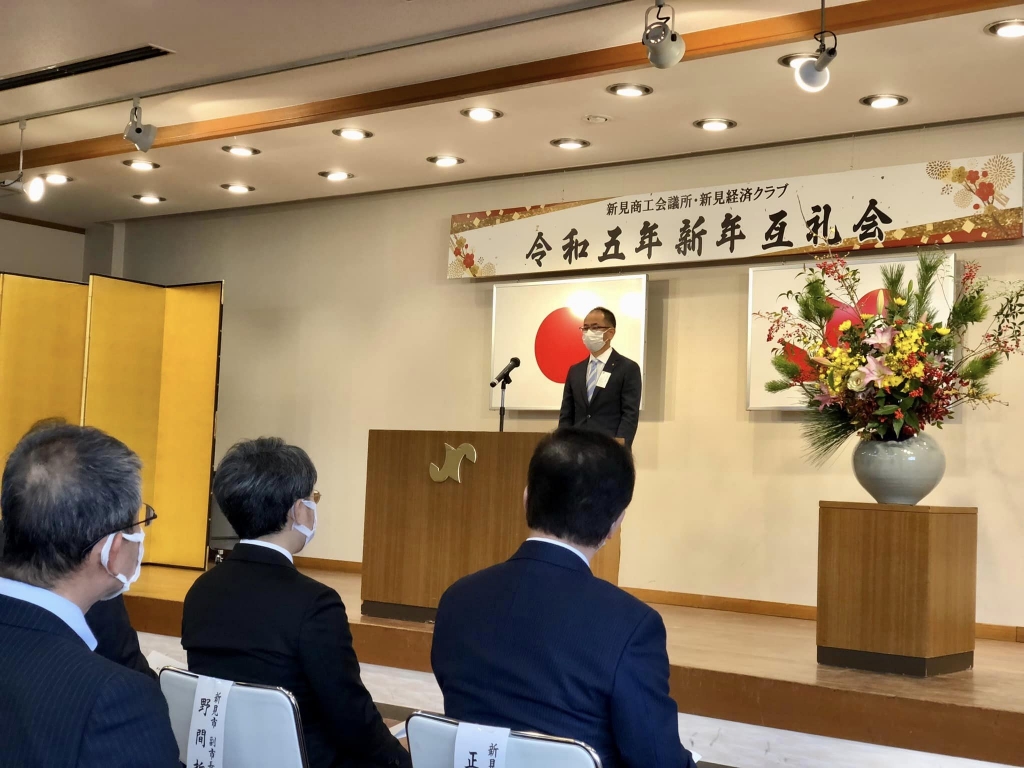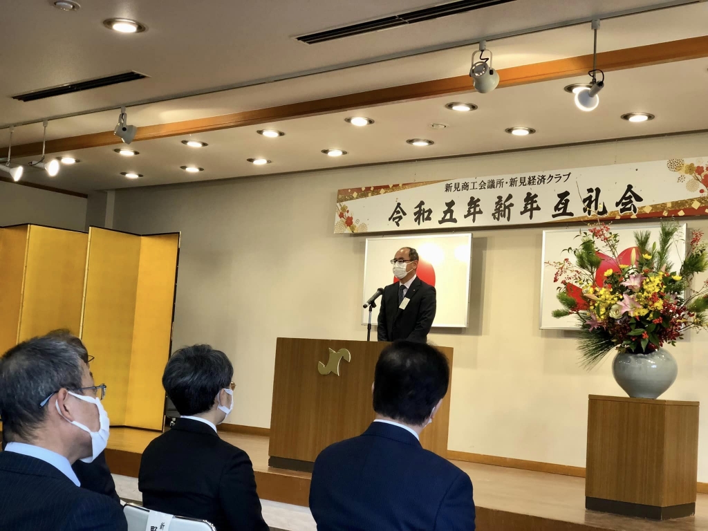 10時30分から、新見商工会議所並びに新見経済クラブの令和5年新年互礼会に出席しました。ご開催おめでとうございます。戎市長、時間備中県民局新見地域事務所長と共に来賓挨拶をさせて頂きました。ありがとうございました。