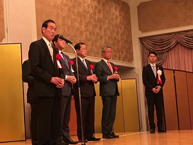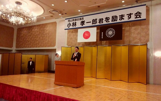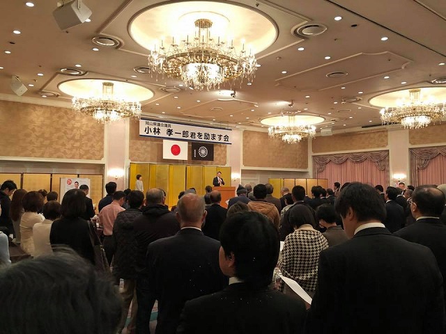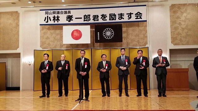 12時から、岡山市内のホテルで開催された『小林孝一郎君を励ます会』に出席しました。小林孝一郎県議は、自由民主党県議団政友会の同期議員。同志と共に出席をさせて頂きました。小林県議を支援される多くの皆様がご出席でした。