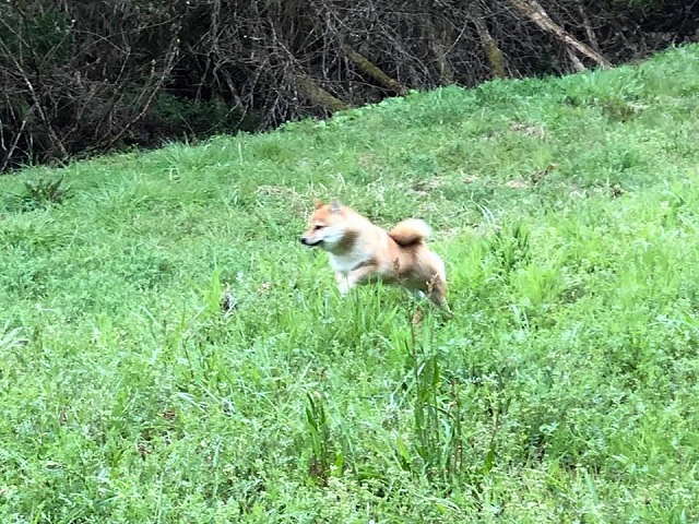 雨が止んだ合間の「朝のお散歩」。小林ふく、飛び跳ねるの図であります。本日もよろしくお願いします。頑張りましょう。