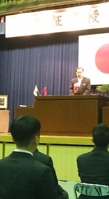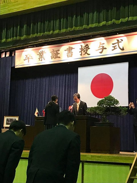 10時から、「岡山県共生高等学校体育館」で挙行された『学校法人天真学園岡山県共生高等学校平成29年度卒業証書授与式』に出席しました。池田市長、仲田市議会議長、藤沢市議会副議長、林田商工会議所会頭はじめ多くのご来賓の皆様、保護者の皆様のご出席を頂き、ありがとうございました。卒業生の皆様、ご卒業おめでとうございました。