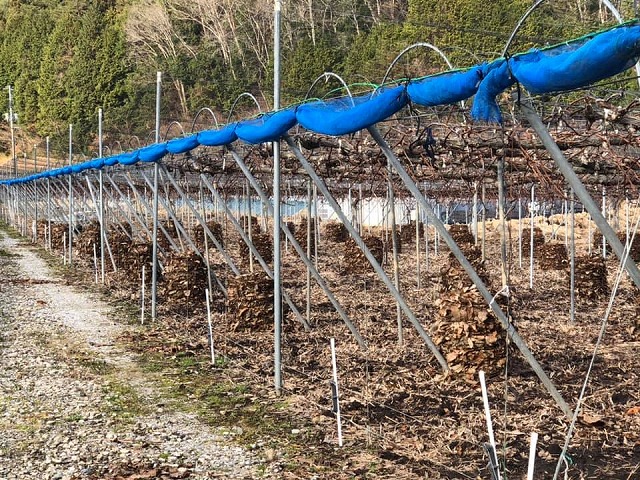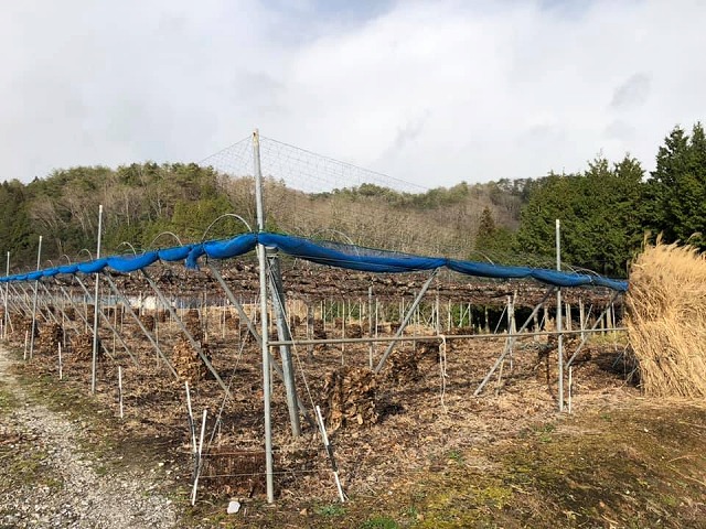 来年の秋の実りの為に、作業が続いている。新見市豊永のぶどう畑です。