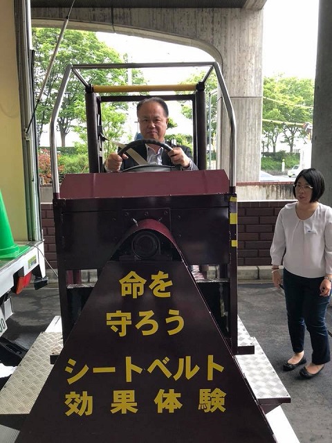 『平成30年度安全・安心の岡山づくり推進議員連盟総会』終了後、「県議会棟前」に移動して、「交通安全体験車おかやまふれ愛号」を体験しました。ありがとうございます。