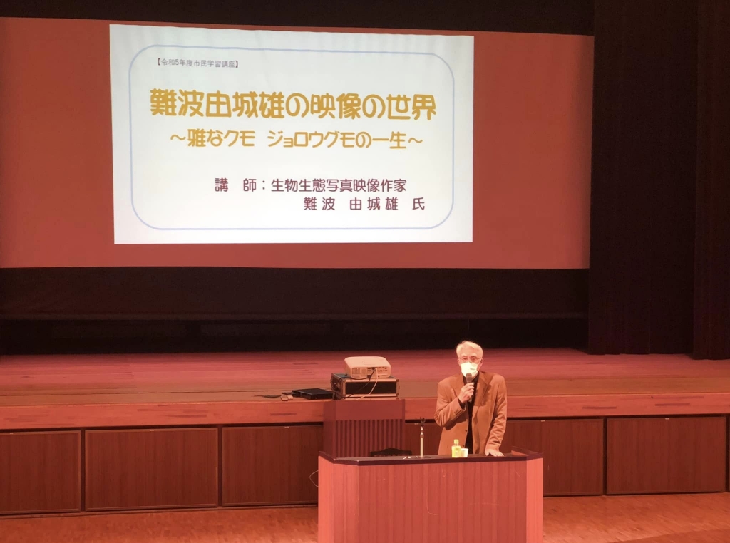 13時から、「哲多総合センター」で開催された難波由城雄先生の講演会に出席しました。難波先生は新見市出身の写真家。「後楽園の写真家」として有名だ。懇意にして頂いている。