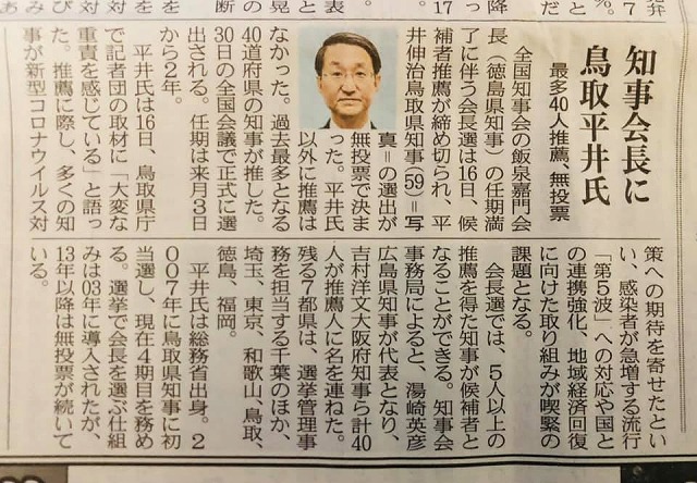 政策を落とし込む天才だ。平井鳥取県知事、おめでとうございます。