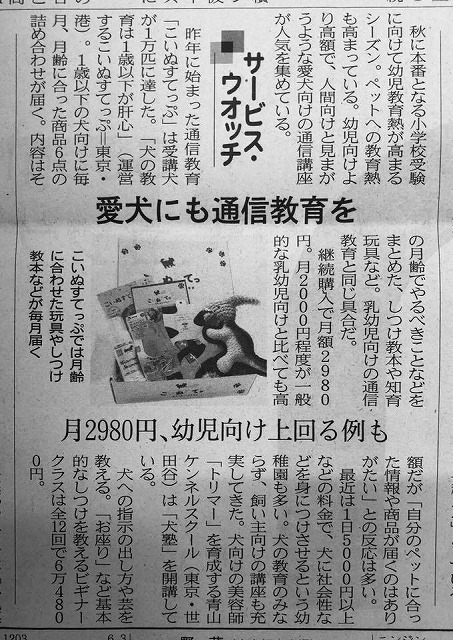 今夜は「おやすみなさい」の小林ふくです(^o^)ノ 「愛犬にも通信教育を」ですか、時代なんですかね。今日の日経新聞に掲載されてるよと、教えていただいた。