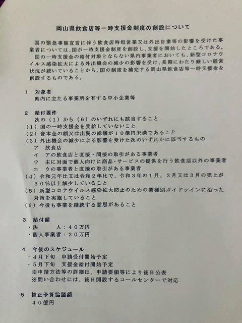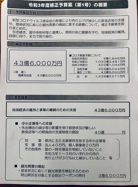 本日、伊原木知事が発表した「岡山県独自の事業者支援制度」です。総額43億6,000万円。財源は国の地方創生臨時交付金を活用します。