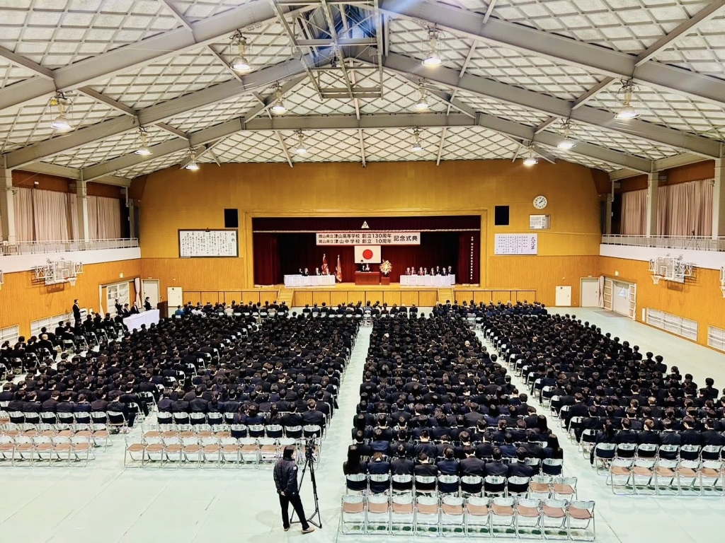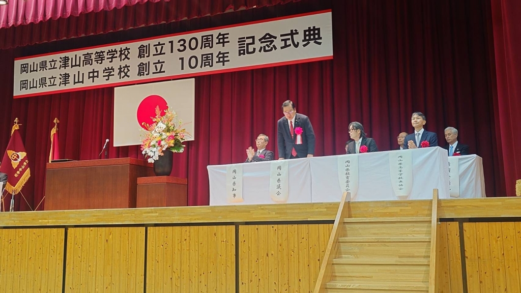 津山市へ移動して、『岡山県立津山高等学校創立130周年・津山中学校創立10周年記念式典』に、岡山県議会を代表して出席させて頂きました。誠におめでとうございました。