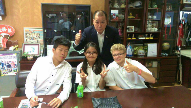 岡山共生高等学校の新しい仲間です。向かって右から、スイスから、カンボジアから、中国から。16歳の若者たちです。歓迎!