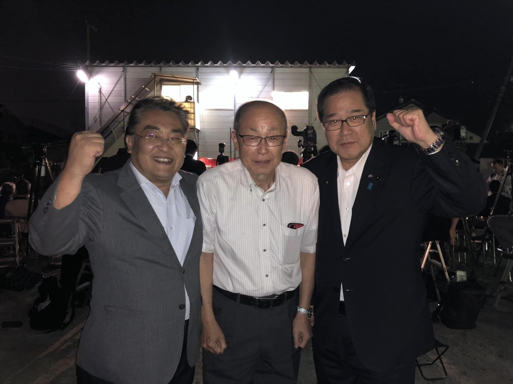 19時過ぎから、「片岡聡一選挙事務所」。現職の片岡聡一氏が5選を果たされました。おめでとうございます。総社市在住の大森前新見市副市長も来られていました。