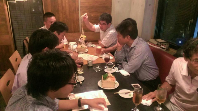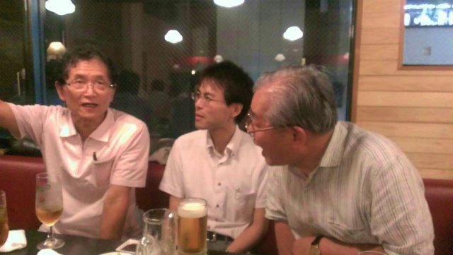 7月26日㈮の夜、久し振りの岡山市内での飲み会でした。大学院の院生と政治学の教授を囲んでのコンパでした。男ばかりの会でした。