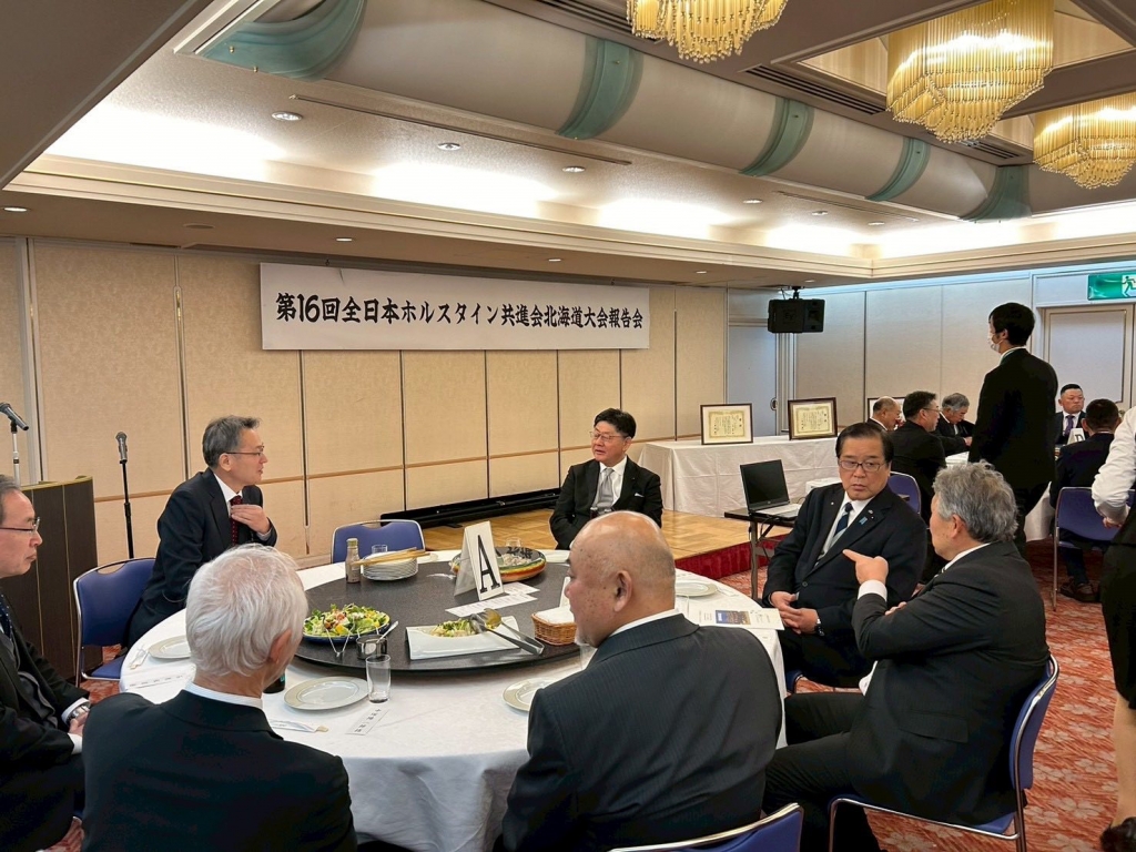 11時から、岡山市内で開催された『第16回全日本ホルスタイン共進会北海道大会・報告会及び懇親会』に出席しました。ご開催おめでとうございます。県議会畜産議員連盟会長として、ご挨拶をさせて頂きました。