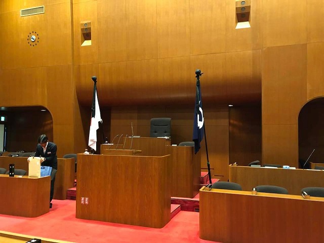 なお、議事堂には、この度の災害で亡くなられた方々に弔意を示すために弔旗が掲げられました。