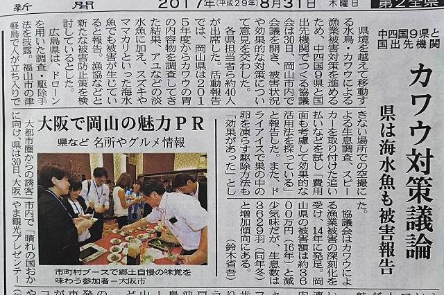 地域と歩む山陽新聞は朝刊であります。6月定例県議会一般質問でとりあげさせて頂いたカワウ被害の問題、広域対策が急務だ。「生息数は増加しているが被害額は減少気味」とのコメント、どう理解すればいいのかな。